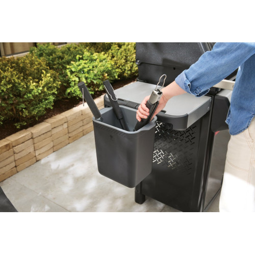 Udržujte svou grilovací plochu uklizenou a připravenou k akci. Držák na náčiní Weber Works je praktický doplněk, který díky systému Snap On snadno nacvaknete na boční lišty grilů. Tento držák je navržen tak, aby bezpečně pojal vaše nejpoužívanější nástroje – od dlouhých kleští až po obracečky – a udržel je v hygienické vzdálenosti od země i prachu.