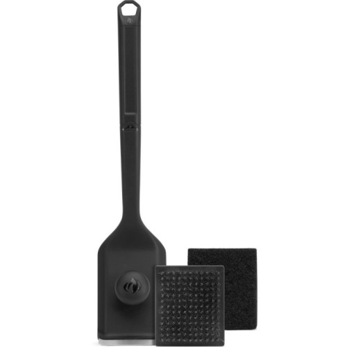 Robustní nerezová hlava: Hlavice s nerezovými štětinami bez námahy odstraňuje karbonizované zbytky jídla, zatímco drátěnka (houbička) je ideální pro dočištění jemnějších nečistot ze všech povrchů grilu.