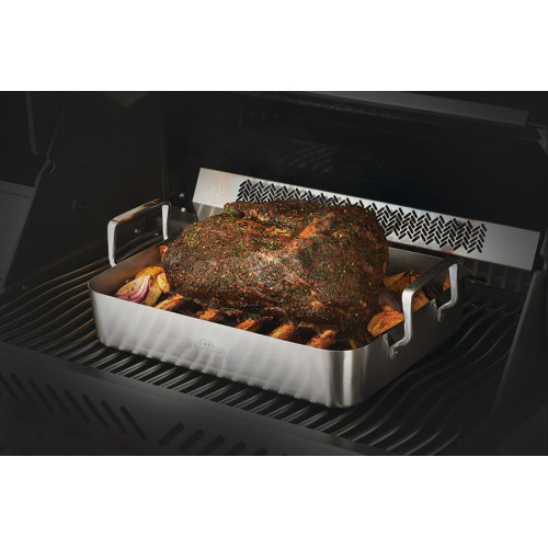 • Robustní nerezový pekáč: Pekáč o velkorysých rozměrech 40 x 31 x 8 cm je vyroben z kvalitní lisované nerezové oceli. Díky své hloubce je ideální pro pečení velkých kusů masa, celých kuřat, marinovaných žeber nebo bohatých zeleninových směsí. Robustní nerezová madla zajišťují bezpečnou a snadnou manipulaci i v grilovacích rukavicích.